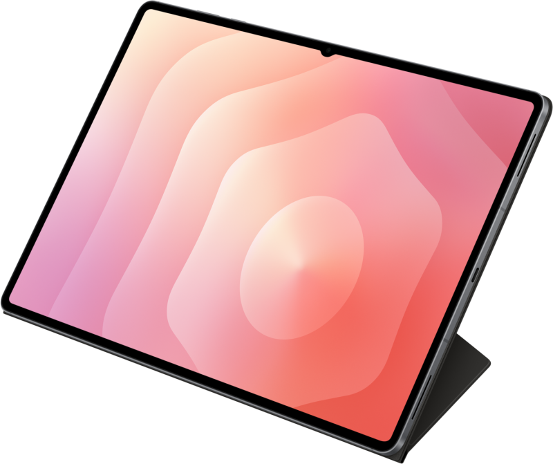 Установите планшет Galaxy вертикально в режиме портрета или альбома, используя чехол Book Cover. Передняя створка складывается и поддерживает планшет сзади, создавая устойчивую опору для вашего экрана, установленного под выбранными вами углом.