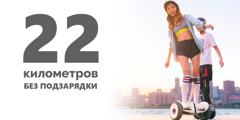 Xiaomi Ninebot Mini впечатляет своей производительностью и энергоэффективностью. Благодаря литиевым аккумуляторам 18650 и интеллектуальной BMS-системе управления зарядом гироскутер может проехать до 22 км без дополнительных подзарядок. Вам не придется переживать о состоянии батареи – просто наслаждайтесь высокой скоростью, встречным ветром и восхищением окружающих.