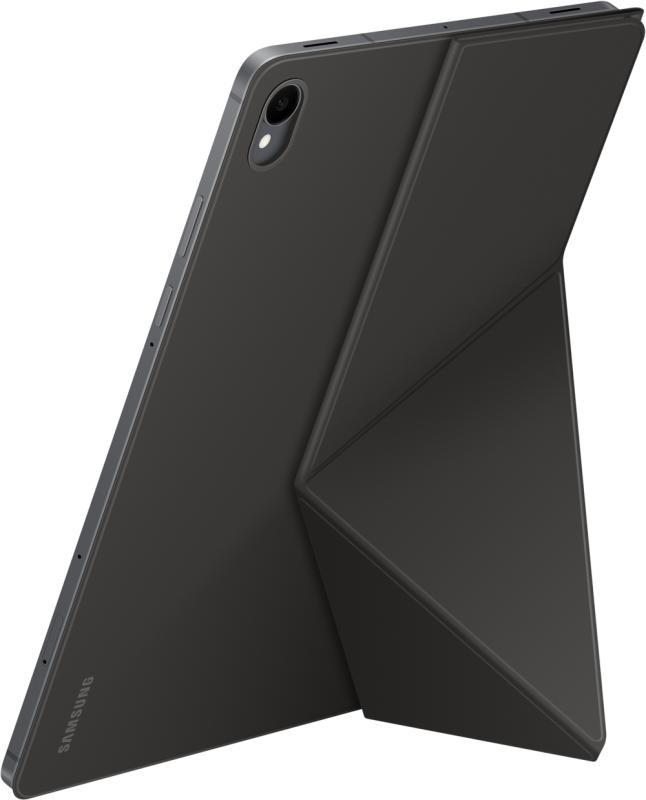Установите планшет Galaxy вертикально в режиме портрета или альбома, используя чехол Book Cover. Передняя створка складывается и поддерживает планшет сзади, создавая устойчивую опору для вашего экрана, установленного под выбранными вами углом.