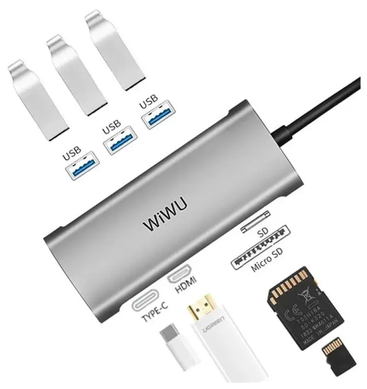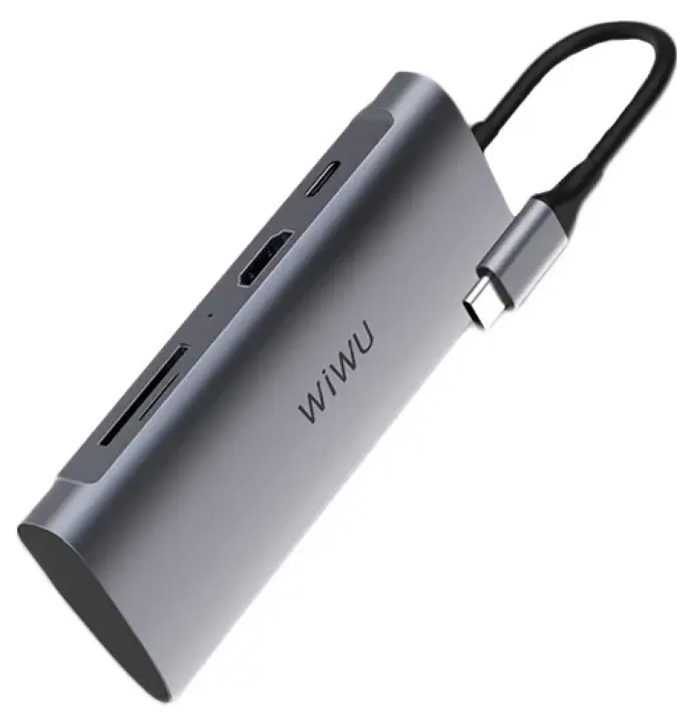 Серый переходник WiWU Alpha A731HP 7-in-1 Type-C Hub – компактный помощник всех пользователей Macbook и ноутбуков с разъемом Type-C.